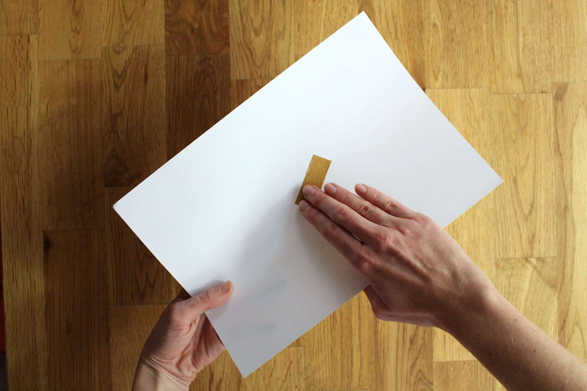 - Klebe ein DIN-A4-Blatt mittels Klebestreifen an die Wand. Dieses wird mir als Orientierungspunkt zwecks Größe dienen.